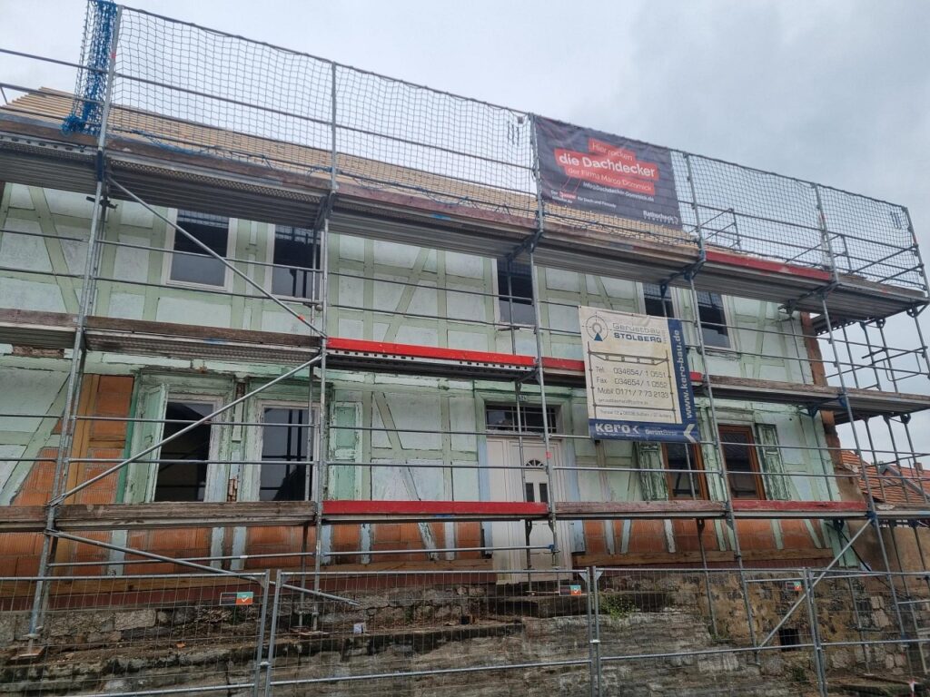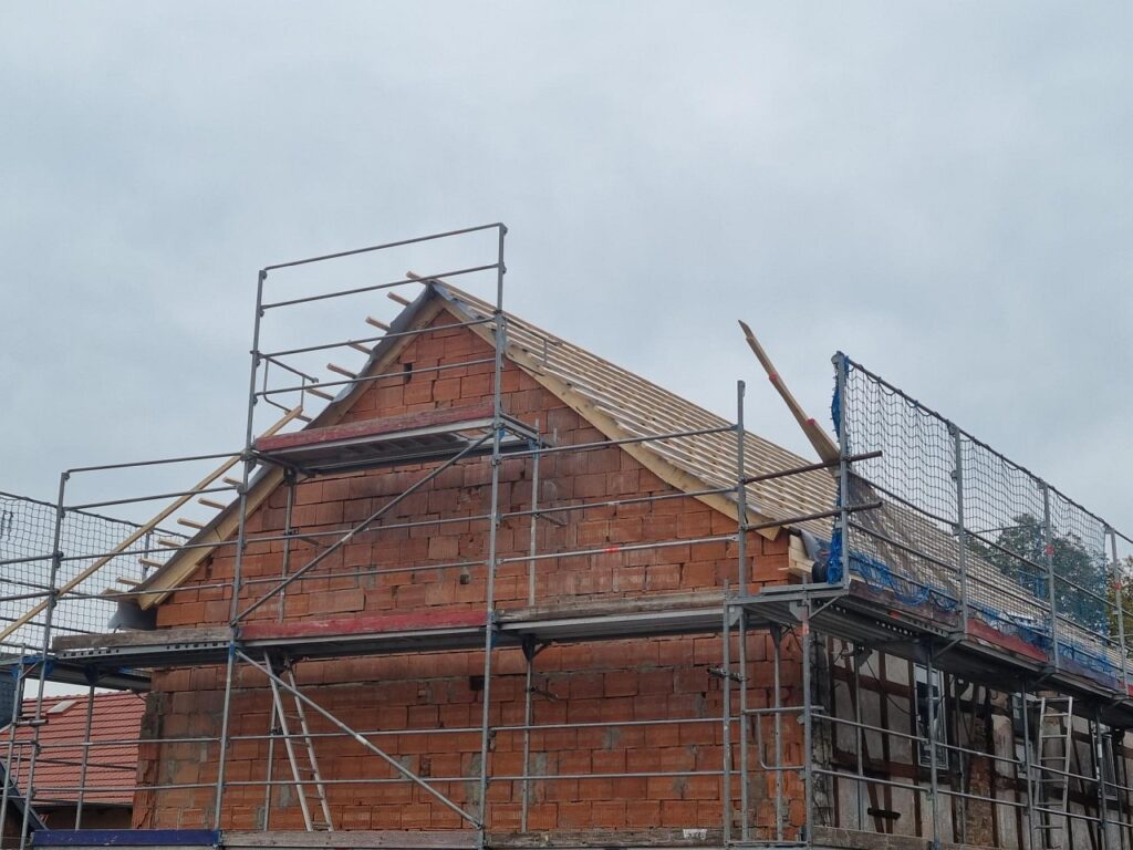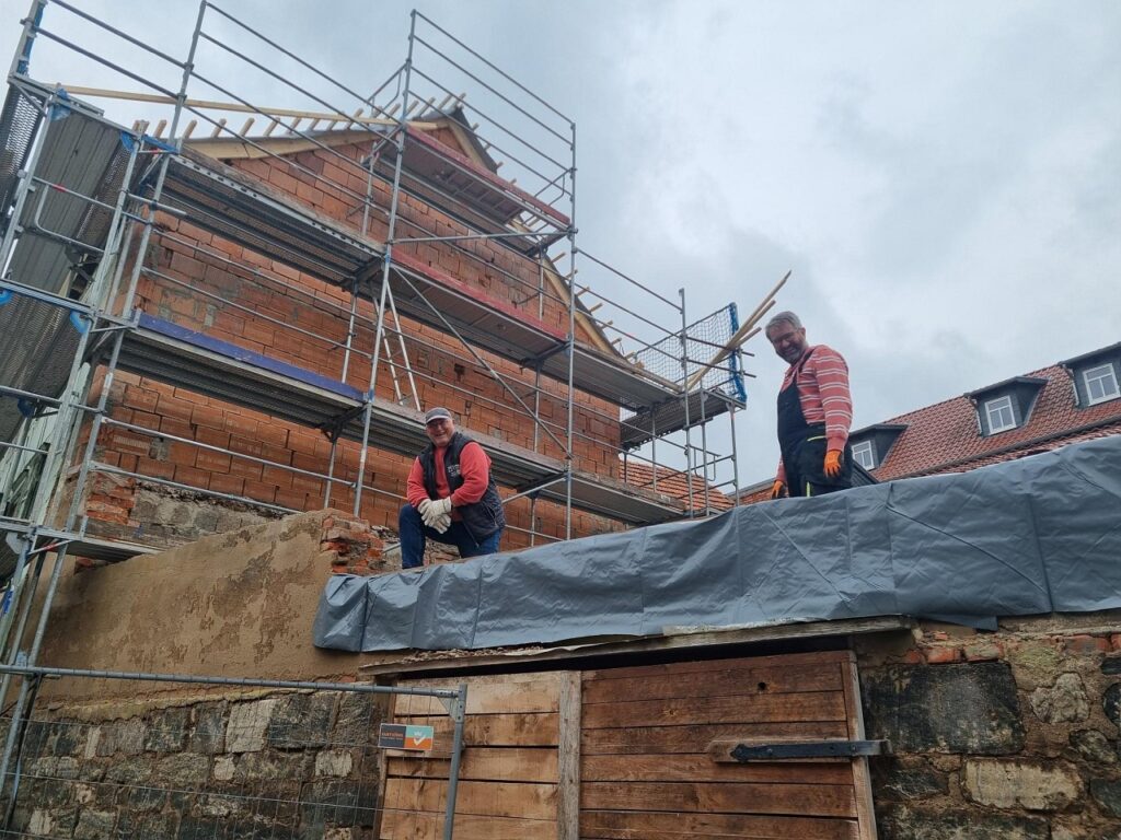 „Hier rocken die Dachdecker der Firma Marco Dommick“ und auch die Außenanlage wird weiter „in Form gebracht“